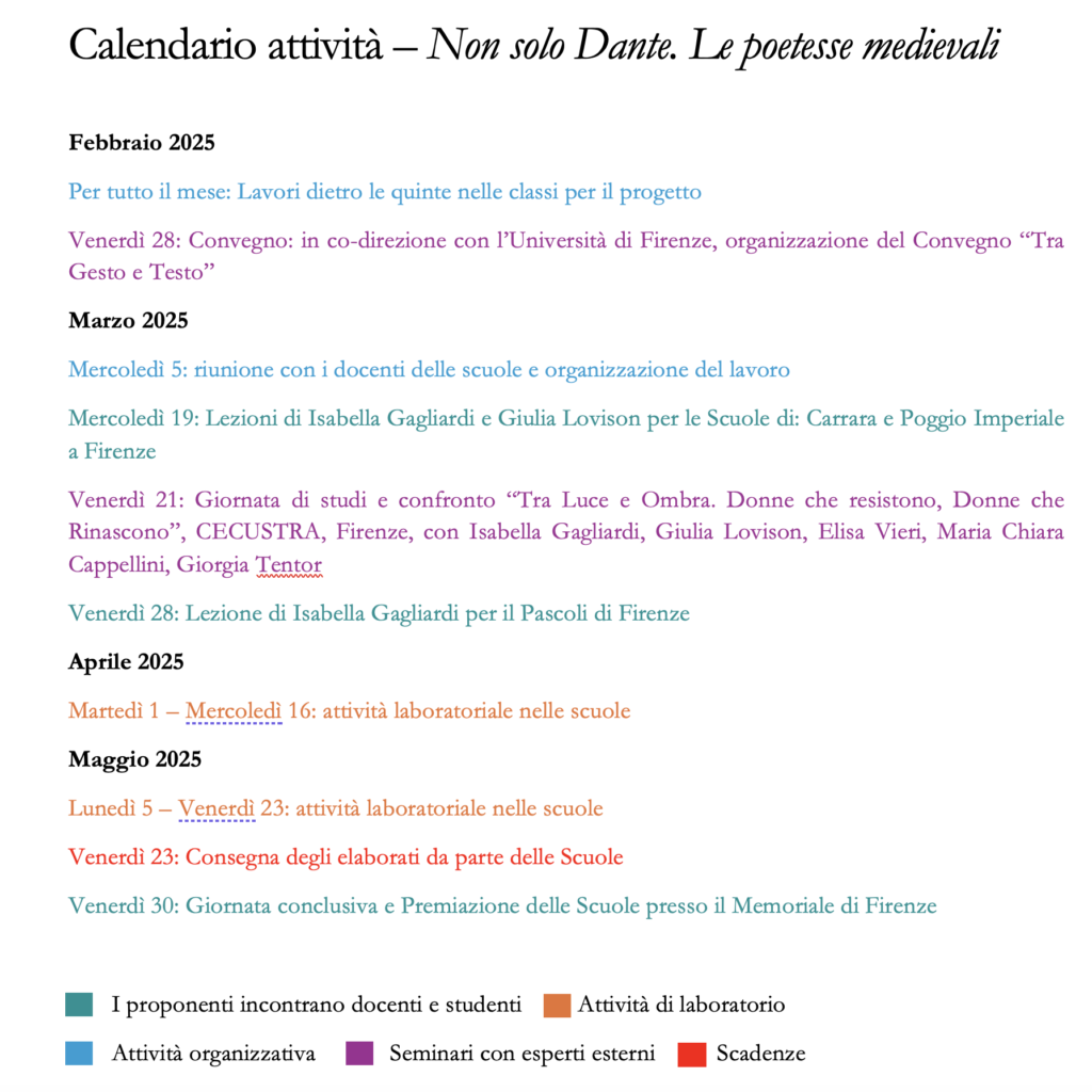 Il progetto “Non solo Dante. Le poetesse medievali”, ideato dalla Società Dante Alighieri – Comitato di Firenze e sostenuto dalla Fondazione CR Firenze, entra nel vivo con un calendario condiviso che guiderà lo svolgimento delle attività per i prossimi mesi.